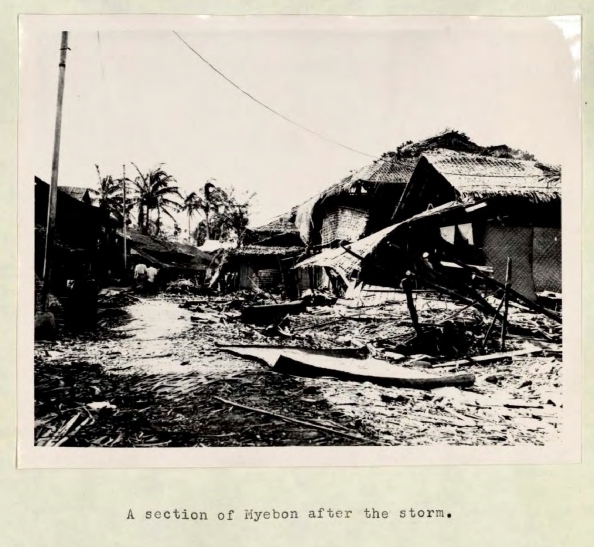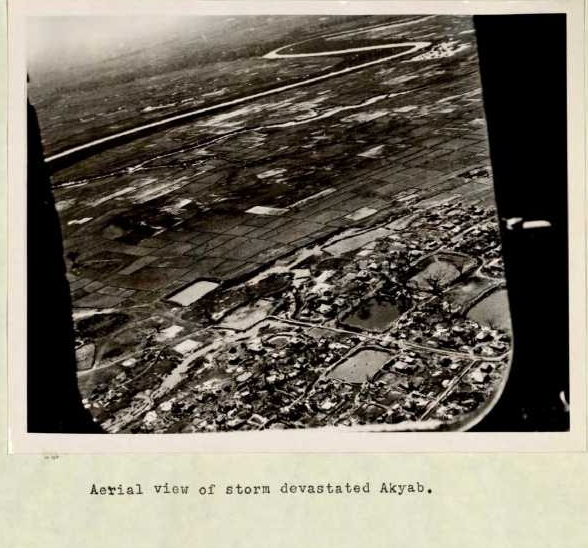 The damage from the cyclone was heaviest in Burma, where the storm caused winds over 100–150 mph (160–240 km/h) in Akyab.[3] Though no rain accumulation reports were received from the country, massive storm surges buffeted houses and ships near the coast and on the path of the cyclone, submerging them.[3] Nine townships in the country reported significant damages while the death toll from the cyclone mainly came from Akyab and Kyaukphyu because of the proximity to the cyclone’s track.[3] The former was 90% damaged due to the storm, with an estimated 50,000 individuals being rendered homeless out of the population of over 75,000.[4][5]