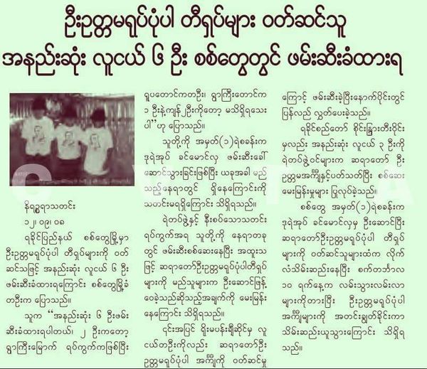 ဦးဥတ္တမရုပ်ပုံပါတီရှပ်များ ဝတ်ဆင်သူ အနည်းဆုံး လူငယ် ၆ ဦး စစ်တွေတွင် ဖမ်းဆီးခံထားရ