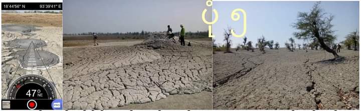 ရွံ့မီးတောင်အစုအဝေးတစ်ခု ဖြစ်ပြီး၊ လောင်ဂျီတွတ်၉၃°၃၉’၄၁”အရှေ့နှင့် လတ္တီတွတ် ၁၈°၄၄’ ၅၆”မြောက်တွင်တည်ရှိသည်(ပုံ ၄)။ ရခိုင်ကမ်းရိုးတန်းတွင်အကြီးဆုံးသောမီးတောင်အစုအဝေး တစ် ခုဖြစ်သည်။ ပေါက်ကွဲမှုအကြိမ်အရေအတွက်ကိုမှတ်တမ်းများတိတိကျကျမရှိသော်လည်း၊ကြိမ်ဖန်များ စွာပေါက်ကွဲမှုဖြစ်ခဲ့ပြီးဖြစ်သည်။ ကျယ်ဝန်းသောမီးတောင်အဝကိုထင်ရှားစွာတွေ့ရသည်။ ကျယ်ပြန့် သောစက်ဝန်းပုံရှိရွံ့ဖုံးလွှာဧရိယာကိုတွေ့ရသည်(ပုံ ၄၊ ၅)။ရွံ့ဖုံးလွှာကိုအနောက်ဘက်တွင်၊အရှေ့ဘက် ပိုင်းထက်ကျယ်ပြန့်စွာတွေ့ရသည်။ ရွံ့ဖုံးလွှာသည်အနောက်ဘက် နှင့်အနောက်တောင်ဘက်သို့ မီတာ ၁၀၀ခန့်အကွာအဝေးထိပြန့်ကျက်နေသည်။လက်ရှိအချိန်တွင်မီးတောင်အဝမှရွံ့များစီးဆင်းလျှက်ရှိနေ သည်။မီးတောင်အဝမှအနိမ့်ပိုင်းသို့ စီးဆင်းသွားသောရွံ့ရည်စီးကြောင်း (mud flow) များကိုထင်ရှားစွာ မတွေ့ရှိပါ။ မီးတောင်အဝသည်သိသာသောအမြင့်တစ်ခု တွင်တည်ရှိမနေခြင်းကြောင့်ဖြစ်သည်။ ၎င်း ပြင်ပေါက်ကွဲမှုပြင်းအားကြောင့်ရ့ွံများအမြင့်တစ်ခုသို့မြင့်တက်သွားပြီး၊ ထွက်ရှိလာသောရွံ့များ နှင့်အတူ မြေနိမ့်ရာအရပ်သို့ယပ်တောင်ပုံစီးဆင်းဖြန့်ကျက်သွားကြသည်(ပုံ ၅)။