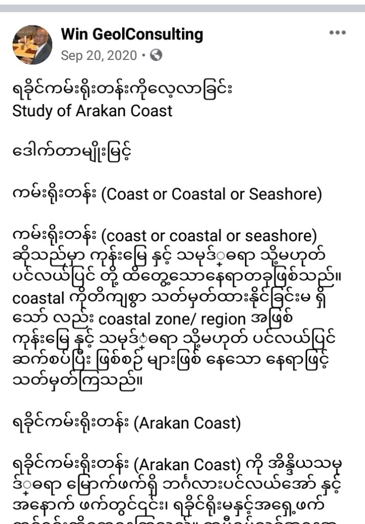 - On Facebook | ” ရခိုင်ကမ်းရိုးတန်းကိုလေ့လာခြင်း Study of Arakan Coast | အပိုင်း (၁)