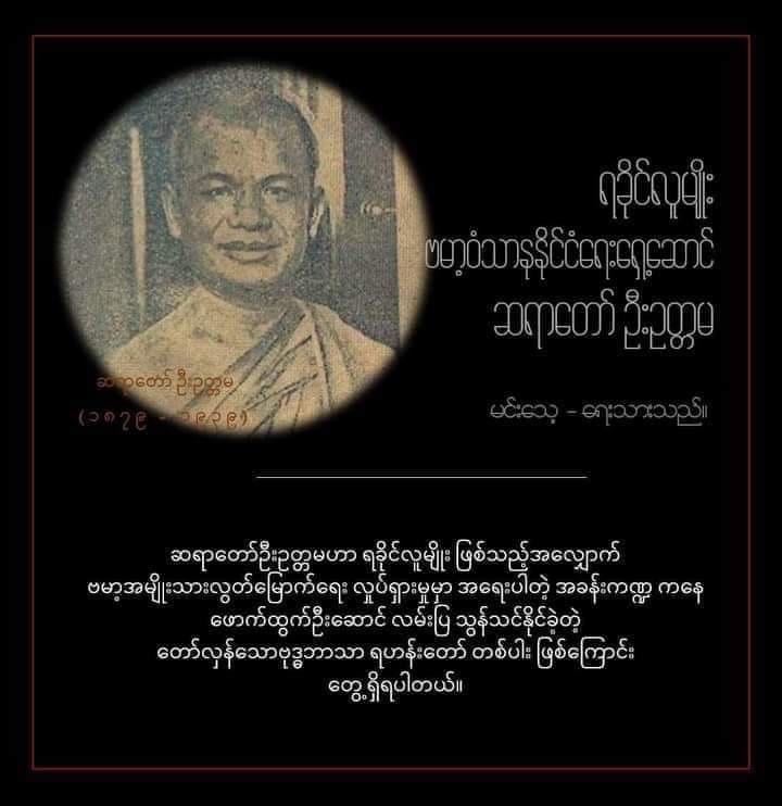 ရခိုင်လူမျိုး ဗမာ့ဝံသာနုနိုင်ငံရေးရှေ့ဆောင် ဆရာတော် ဦးဥတ္တမ