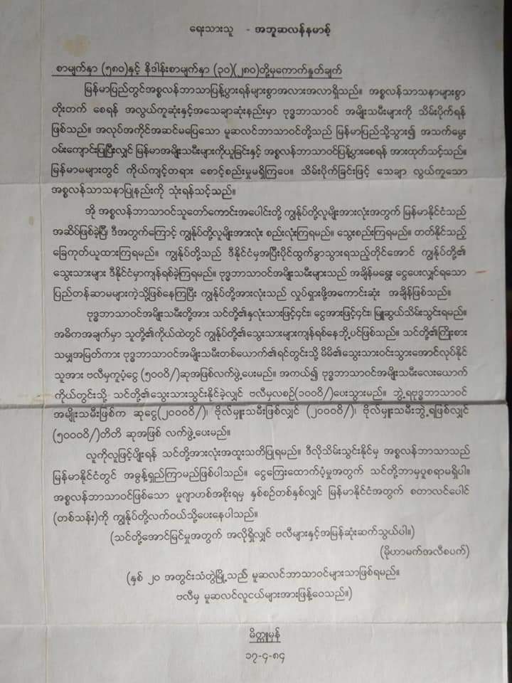 သူများစာရင်းပေးစေလိုပါသည်” ဟုဖိတ်ခေါ်