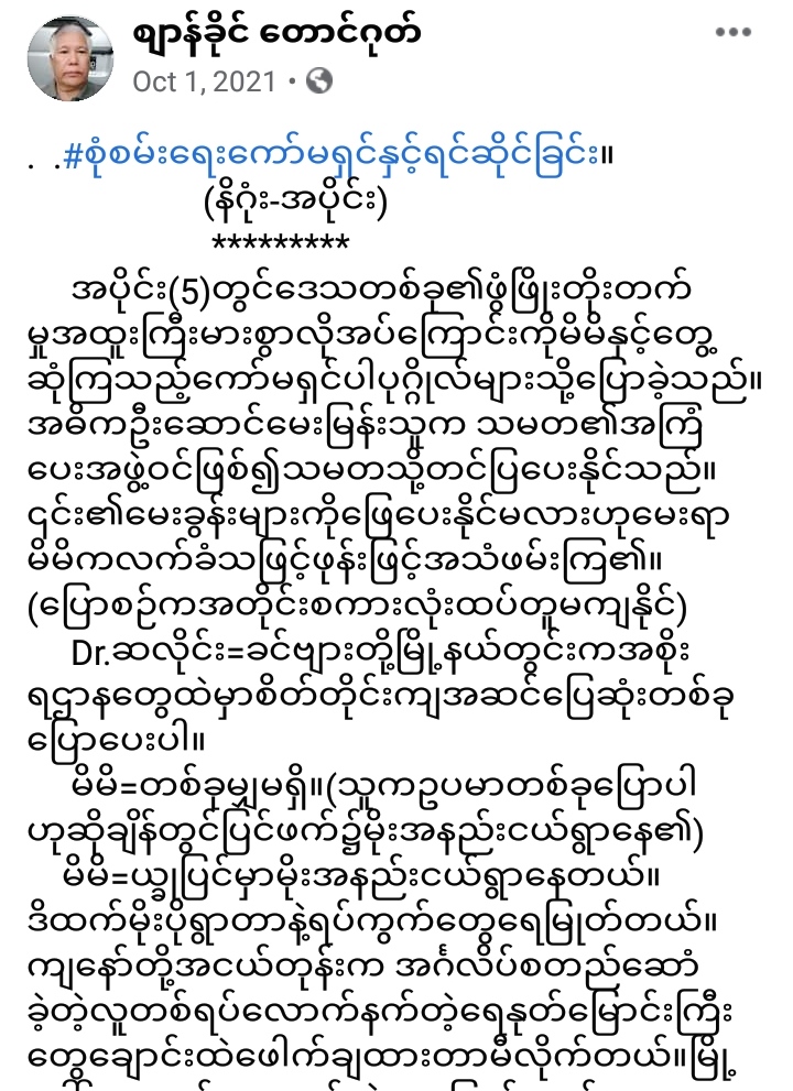 (ပြောစဉ်ကအတိုင်းစကားလုံးထပ်တူမကျနိုင်)