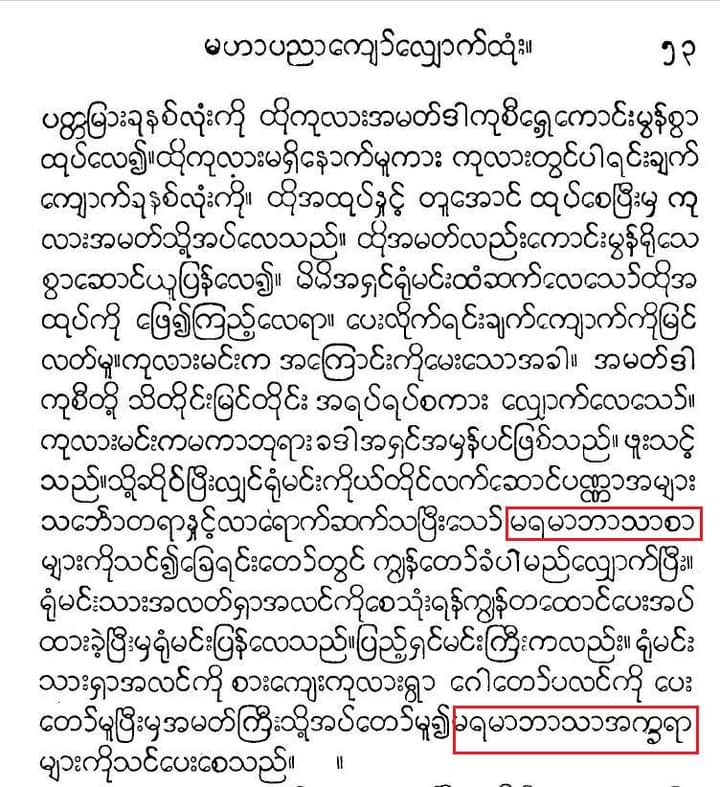 ၅. ရခိုင်ရာဇဝင်ကြီး ၁၈၅၂ မှာ − ရခိုင်ပြည်မှာ သုံးစွဲတဲ့ဘာသာစကား ကို ‘မြမ္မာဘာသာ’လို့ ဖေါ်ပြခဲ့ပါတယ်။ − ပုံ 017