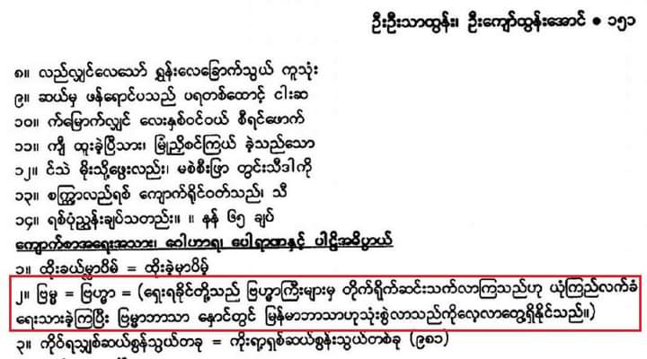 မြန်မာမင်း အုပ်ချုပ်ပုံစာတမ်း (၁၉၂၄)မှာလည်း “မြန်မာကြီးဆိုသည်ကား ရခိုင်၊ မြန်မာငယ်ဆိုသည်ကား ပြူ” ဆိုတဲ့ အဆိုနဲ့လည်း ကိုက်ပါတယ်။ − ပုံ 013