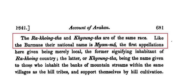 ၁. 1799, Francis Buchanan − people of Arakan whom they often call Myanmawgyee − the name given by the inhabitants of Ava to the people of Arakan ။ အင်းဝသား တွေက ရခိုင်ပြည်သားတွေ ကို မြန်မာကြီး လို့ ခေါ်ကြပါတယ်။