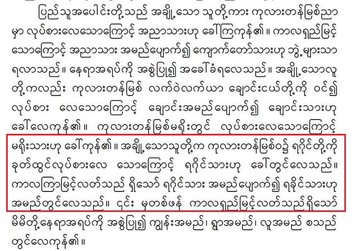 ကျွန်တော် ဖတ်လို့ နားလည်သလောက် ပြန်ရေးပေးထားပါတယ်။ အမှားတွေ့လျင် အများအကျိုးအတွက် ကျေးဇူးပြုပြီး ပြင်ပေးစေချင်ပါတယ်။