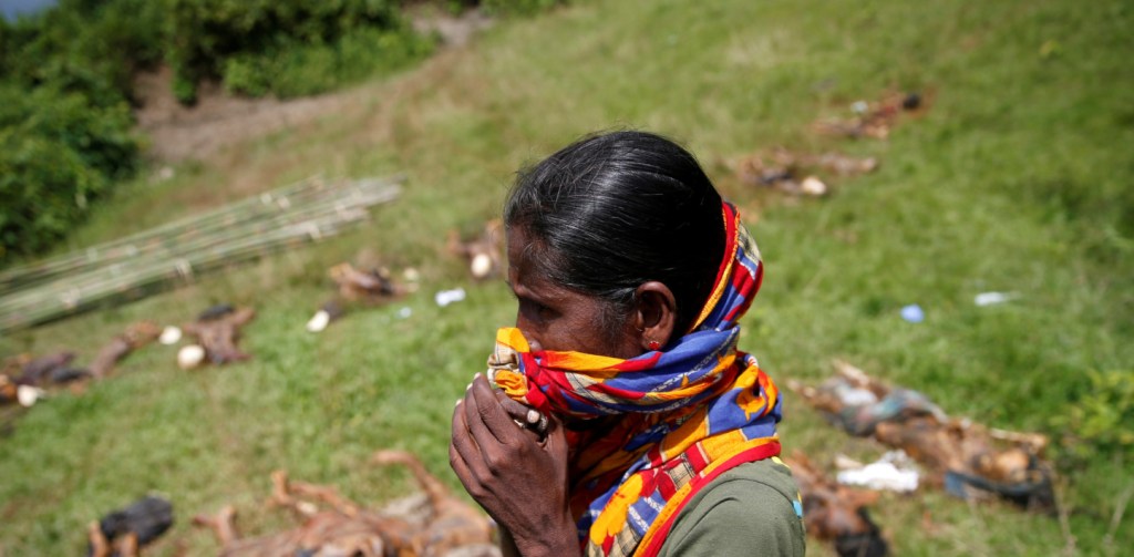 [ - 'I saw men holding the heads and hair [of the women] and others were holding knives. And then they cut their throats.' Formila, 20, survivor of the massacre in the Hindu village of Ah Nauk Kha Maung Seik - ]