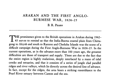 December 19, 2021May 29, 2022 tmnwiki Arakan and the First Anglo-Burmese War, 1824-25 Arakan and the First Anglo-Burmese War 1824-25 “Arakan and the First Anglo-Burmese War, 1824-25” (by B. R. Pearn) ဖတ်ရှုရန် / ဒေါင်းလုပ်ချရန် Books/Docs Wiki Articles Home KZO Blog Facebook Twitter Telegram WordPress LinkedIn Instagram Share this: Click to share on X (Opens in new window) X Click to share on Facebook (Opens in new window) Facebook Like Loading... Related