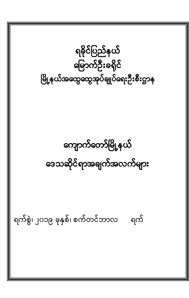 January 20, 2022February 6, 2022 tmnwiki ကျောက်တော်မြို့နယ် ဒေသဆိုင်ရာ အချက်အလက်များ၊ ၂၀၁၉ ကျောက်တော်မြို့နယ် ဒေသဆိုင်ရာ အချက်အလက်များ၊ ၂၀၁၉ author: General Administration Department (“listed-as-Arakan-related Doc” no. – 187 – ) download hereဤမှာ ဒေါင်းလုပ်ချပါ Books/Docs Wiki Articles Home KZO Blog Click to access tspprofiles_gad_kyauktaw_2019_mmr.pdf Facebook Twitter Telegram WordPress LinkedIn Instagram Share this: Click to share on X (Opens in new window) X Click to share on Facebook (Opens in new window) Facebook Like Loading... Related