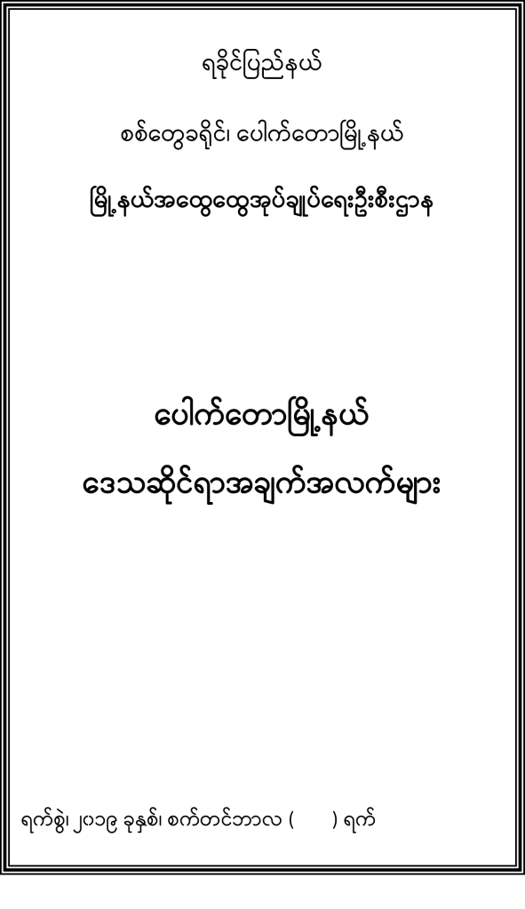 January 21, 2022February 5, 2022 tmnwiki ပေါက်တောမြို့နယ် ဒေသဆိုင်ရာ အချက်အလက်များ၊ ၂၀၁၉ ပေါက်တောမြို့နယ် ဒေသဆိုင်ရာ အချက်အလက်များ၊ ၂၀၁၉ author: General Administration Department (“listed-as-Arakan-related Doc” no. – 192 – ) download hereဤမှာ ဒေါင်းလုပ်ချပါ Books/Docs Wiki Articles Home KZO Blog Click to access tspprofiles_gad_pauktaw_2019_mmr.pdf Facebook Twitter Telegram WordPress LinkedIn Instagram Share this: Click to share on X (Opens in new window) X Click to share on Facebook (Opens in new window) Facebook Like Loading... Related