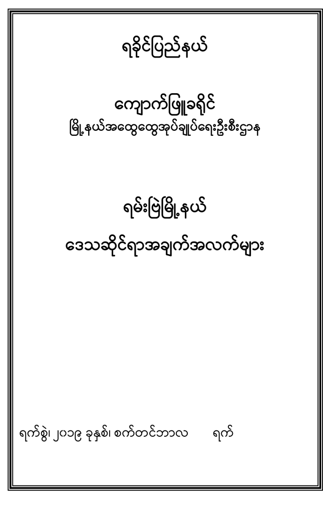 January 21, 2022February 5, 2022 tmnwiki ရမ်းဗြဲမြို့နယ် ဒေသဆိုင်ရာ အချက်အလက်များ၊ ၂၀၁၉ ရမ်းဗြဲမြို့နယ် ဒေသဆိုင်ရာ အချက်အလက်များ၊ ၂၀၁၉ author: General Administration Department (“listed-as-Arakan-related Doc” no. – 194 – ) download hereဤမှာ ဒေါင်းလုပ်ချပါ Books/Docs Wiki Articles Home KZO Blog Click to access tspprofiles_gad_ramree_2019_mmr.pdf Facebook Twitter Telegram WordPress LinkedIn Instagram Share this: Click to share on X (Opens in new window) X Click to share on Facebook (Opens in new window) Facebook Like Loading... Related