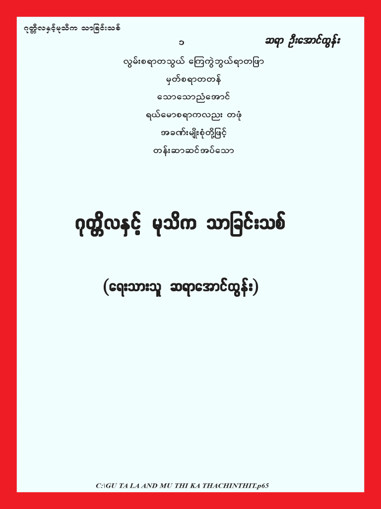 January 30, 2022August 21, 2022 tmnwiki ဂုတ္တိလ နှင့် မုသိက သာခြင်းသစ် ဂုတ္တိလ နှင့် မုသိက သာခြင်းသစ် authored by: ဆရာ ဦးအောင်ထွန်း (“listed-as-Arakan-related Doc” no. – 31 – ) download hereဤမှာ ဒေါင်းလုပ်ချပါ Books/Docs Wiki Articles Home KZO Blog Click to access 31_-arakanese-folk-poems-about-gauktila-and-muthika_-by-u-aung-tun.pdf Facebook Twitter Telegram WordPress LinkedIn Instagram Share this: Click to share on X (Opens in new window) X Click to share on Facebook (Opens in new window) Facebook Like Loading... Related