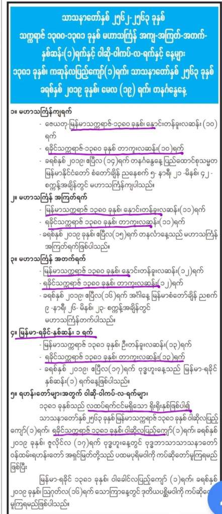 (၂၅-၃-၂၀၁၉ မြန်မာ့အလင်းပါ ၁၃၈၀ ပြည့် သင်္ကြန်ရက် ကြေညာချက် တွေ့၍ ပြန်လည်တင်ပြခြင်း)