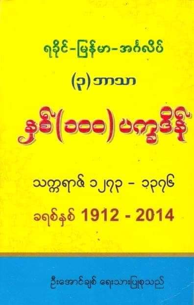 နုစ်၁၀၀ပြက္ခဒိန် ကိုစစ်တွေမြို့ရှိ ရခိုင်ခေတ်ပုံနိုပ်တိုက်မှထုတ်ဝေခဲ့သည်။AD ၁၈၅၉မှ ၁၉၆၀ထိ တွက်