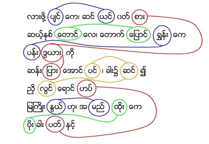 (သုံးကျော့လိမ်) ကာရန်မှာ အလွန်နည်းသည်။ နောက်ပိုင်းတွင် ဖော်ပြပီးလားပါမည်။