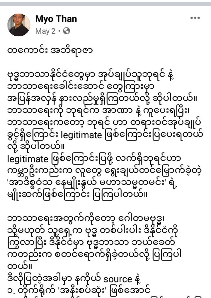 - source: “တကောင်း အဘိရာဇာ” | by Myo Than | on Facebook