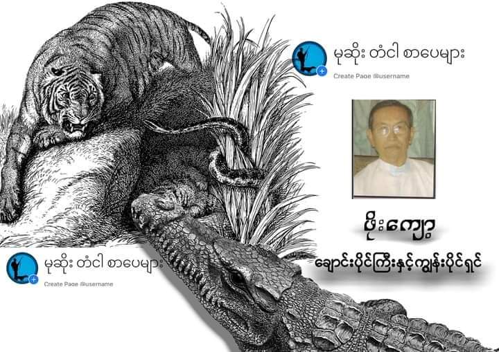နားသည် ဒိုးဒိုးဒေါင် ဒေါင် ခလောက်မြည်သံကိုချည်း ကြားနေမိတော့သည်။ ကျွန်တော်တို့ မြေးအဘိုး ထောင်ထားသော ကိုင်းတွင် ချောင်းပိုင်ကြီးမိ၍ တလူးလူး တလွန့်လွန့် လှုပ်ရှားရုန်းကန်နေသည်ကိုလည်း စိတ်ထဲမှာမြင်မိသလိုပင်။ မိကျောင်းနှင့် ကျားများကို နှစ်ပေါင်းများစွာ ထောင်ဖမ်းသတ်ဖြတ် လာသော ကျွန်တော်၏ နား၊ မျက်စိတို့မှာ ကျားနှင့် မိကျောင်းသရဲများ စွဲဝင်ပူးကပ်နေသကဲ့သို့ပင် ရှိတော့သည်။