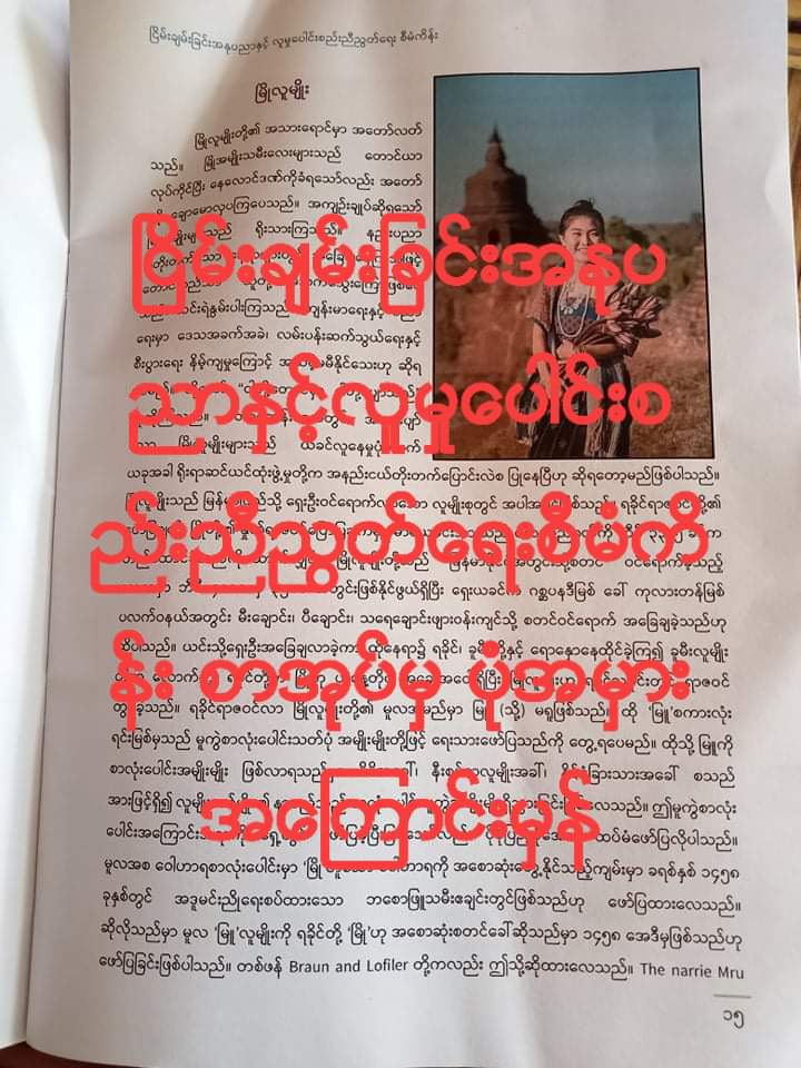 တိုင်းရင်းသားယဉ်ကျေးမှုရိုးရာဓလေ့ထုံးစံများ (ရခိုင်)မြန်မာ့ ဆိုရှယ်လစ်လမ်းစဉ်ပါတီမှ ထုတ်ဝေသောစာအုပ် စာမျက်နှာ ၃၁-၃၂ မှာ မှားယွင်းရောထွေးမှုပြဿနာကိုရှင်းတမ်းထုတ်ထားခြင်း