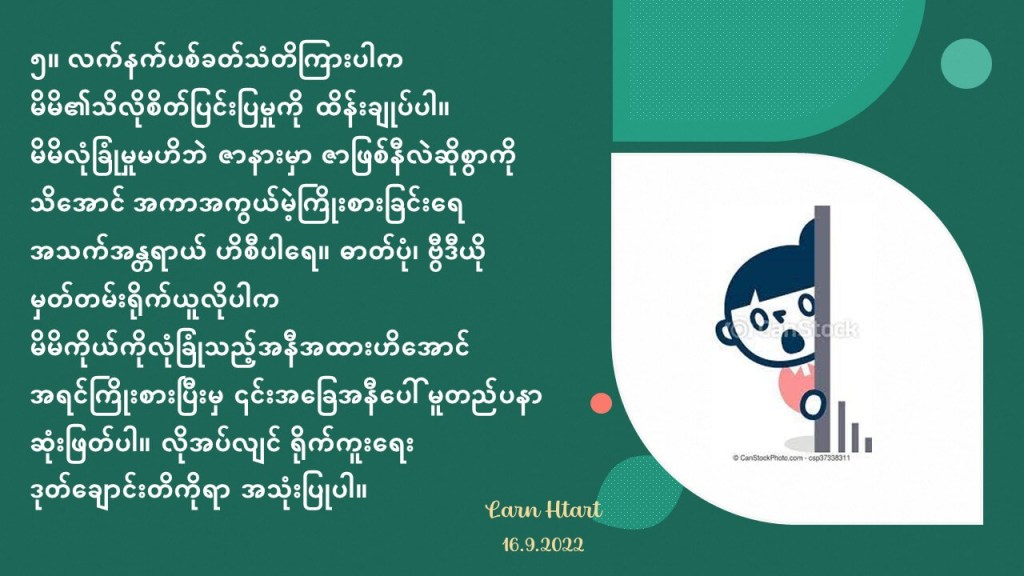 ၅။ မိမိ၏ သိလိုစိတ်ပြင်းပြမှုသည် အန္တရာယ် မိမိကို အန္တရာယ်ဖြစ်စီရေ ဆိုစွာကို အမှတ်ရပါ။