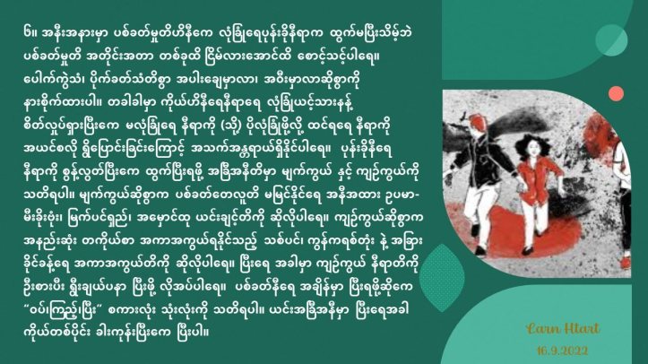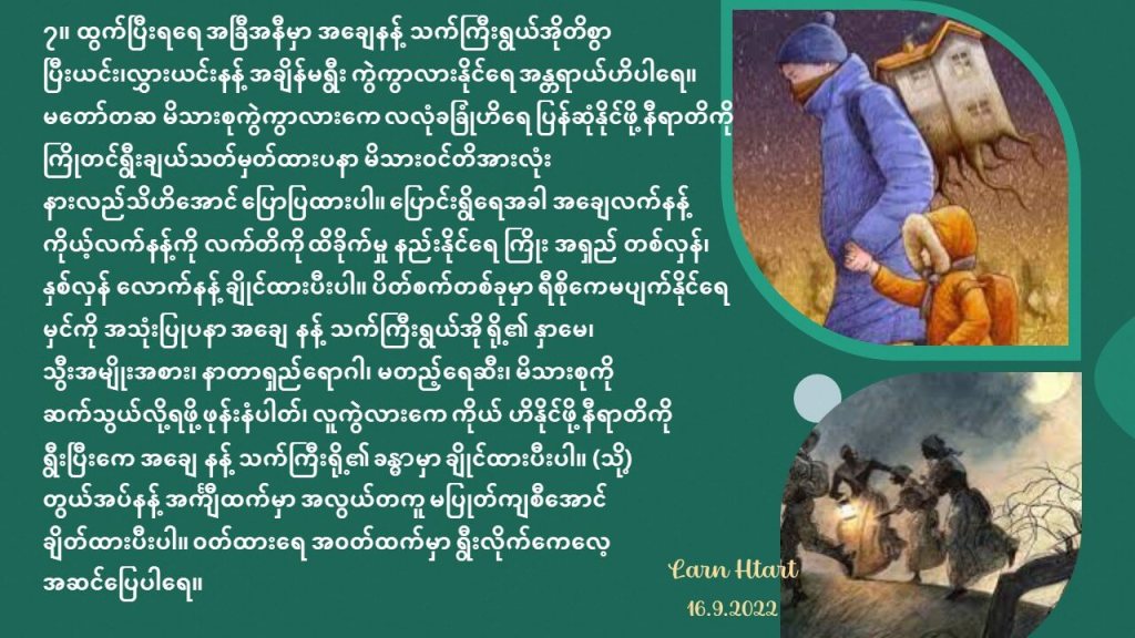 ၇။ မိသားစု ကွဲထွက်လားစွာတိ မဖြစ်အောင် ကြိုတင်ပြင်ဆင်ထားပါ။