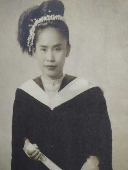 Daw Kyan was born on July 1st, 1918 in Thandwe Township, Rakhine State. Her father was U Kyaw Tun, Health Official of Thandwe in the service of the British colonial administration. Her mother was Daw Ngwe Hnint. When she was nine years old, her father died. She therefore spent her childhood life with her mother and her siblings, two younger brothers and one sister. Her siblings were all good students, who – like herself – based their lives on a good education built their life with education. All her siblings passed away before her.