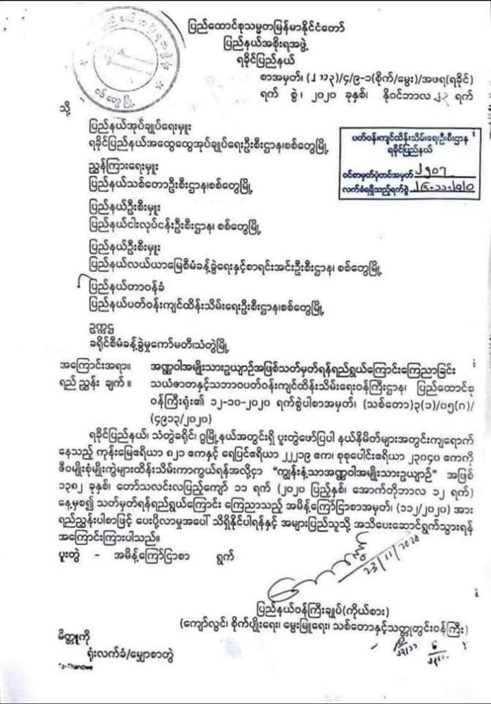 “ကျွန်းနံ့သာအဏ္ဏဝါအမျိုးသားဥယျာဉ်” အဖြစ် ရည်ရွယ်ကြောင်း ကြေငြာစာ