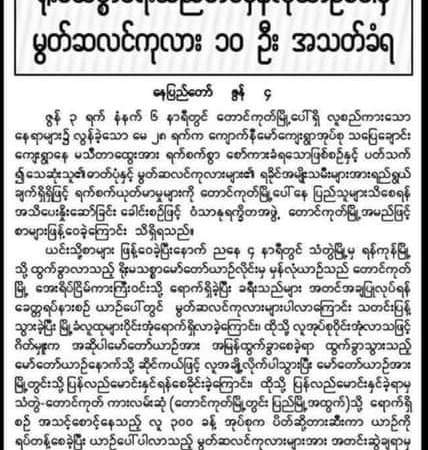 မွတ်ဆလင်ကုလား (၁၀)ဦး အသတ်ခံရ (newspaper cutting)