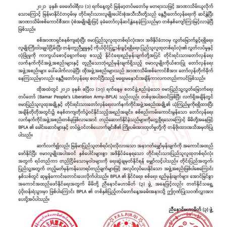 BPLA တစ်နှစ်ပြည့် တပ်တော်နေ့အခမ်းအနားသို့ ညီနောင်မဟာမိတ် (၃) ဖွဲ့မှ ပေးပို့သော ဂုဏ်ပြုသဝဏ်လွှာ